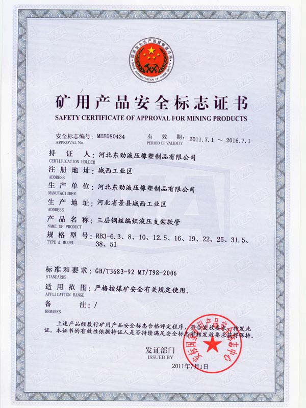 • 鋼編管?chē)?guó)際標(biāo)準(zhǔn)產(chǎn)品標(biāo)志證書(shū)